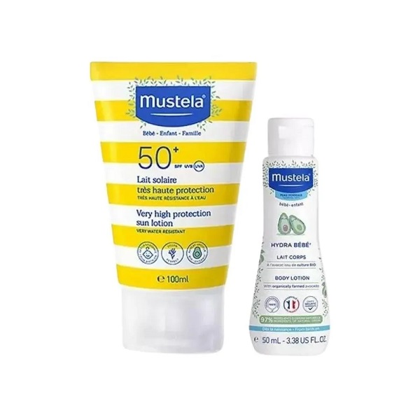 لوسیون ضد آفتاب کودک SPF50+ موستلا که در یک پک به همراه یک لوسیون آووکادو مینی موستلا قرار گرفته و به طور موثری از پوست کودکان در برابر اشعه‌هایUVA و UVB محافظت می‌کند. همچنین نرمی، طراوت و هیدراتاسیون پوست را نیز حفظ کرده و در برابر آب، رطوبت و گرد و خاک مقاوم است.