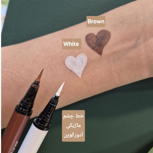 خط چشم ماژیکی آدور کوین مدل گلکسی با یک اپلیکاتور نمدی بسیار ظریف و بافت مایع نرم و روان کشیدن انواع خط را بسیار راحت می‌کند. این محصول جلوه مات و مخملی روی پوست دارد و فرمولاسیون ضد آب و 48 ساعته آن در برابر اشک، تعریق و رطوبت مقاوم می‌باشد.