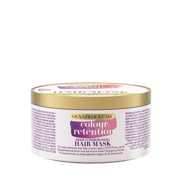 ماسک تثبیت کننده رنگ مو او جی ایکس با فناوری Color Bond Plex برای محافظت از موهای رنگ شده در برابر آسیب‌زا و اشعه‌های UV فرموله شده است. این ماسک مو از کدری و رنگ‌پریدگی موهای شما جلوگیری می‌کند و با آبرسانی و تغذیه موثر موجب نرمی، درخشندگی و دوام رنگ موها می‌شود.